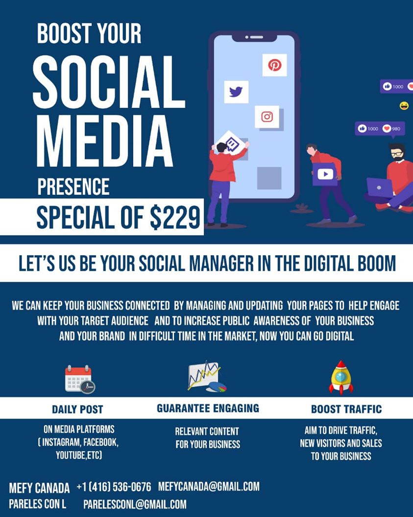 Let us be your Social Manager in the Digital Boom. We can keep your business connected by managing and updating your pages to help engage with your target audience and to increase public awareness of your business and your brand in a difficult time in the market, now you can go digital.
